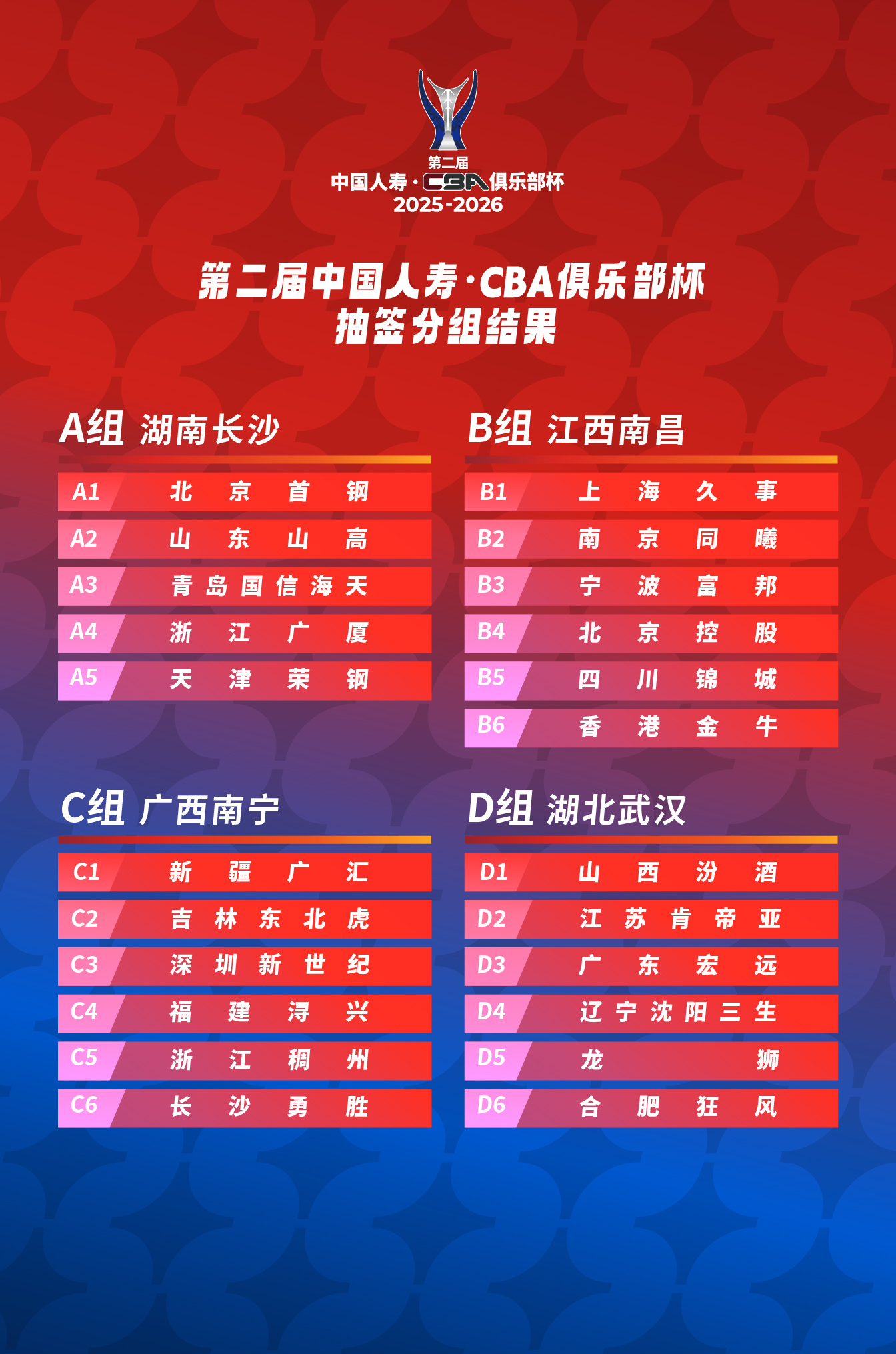第二届中国人寿·CBA俱乐部杯小组赛赛区及分组信息公布!